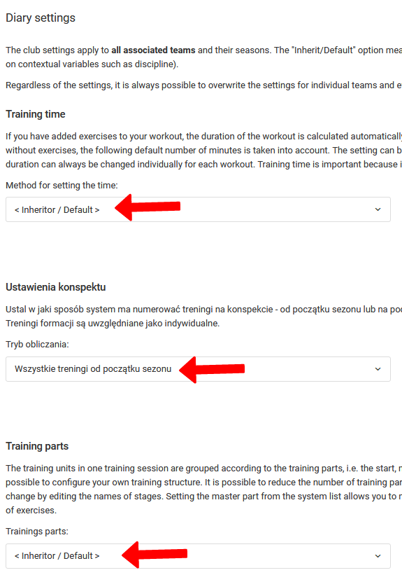 Postavke dnevnika imaju izravan utjecaj na određene globalne postavke, koje kao upravitelj možete postaviti kao zadane postavke dnevnika. Naravno, treneri u mnogim slučajevima imaju izbor hoće li naslijediti globalne postavke entiteta ili postaviti određene stavke pojedinačno.