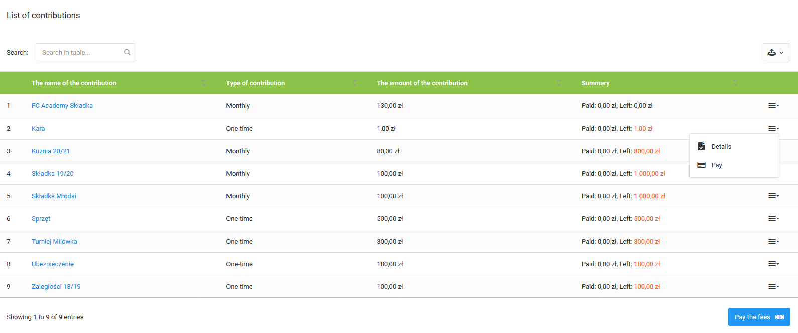 Uporabnik ima dve možnosti za plačilo prispevka s sistemom: hitro in ročno/masovno. Hitri pomeni, da izberete možnost "plačaj" za določen prispevek na meniju, kar bo uporabnika preusmerilo direktno na plačilno okno. Druga možnost je, da plačate več prispevkov hkrati. Da izberete to možnost, kliknite modri gumb "plačaj več prispevkov". Po kliku izberite katere prispevke želite plačati. Pri naslednjem koraku vnesite zneske za vsak prispevek, mesec, itd. Nato pojdite na plačilo, izberite primeren način in naredite prenos. Plačilo je mogoče tudi z mobilno aplikacijo.